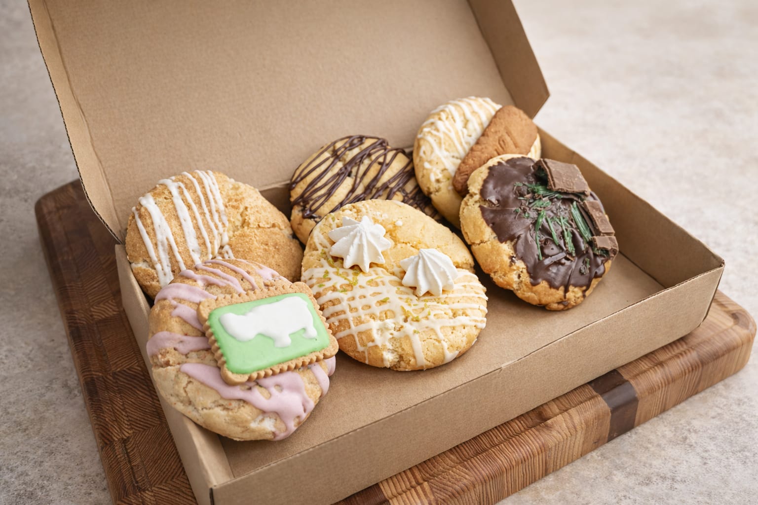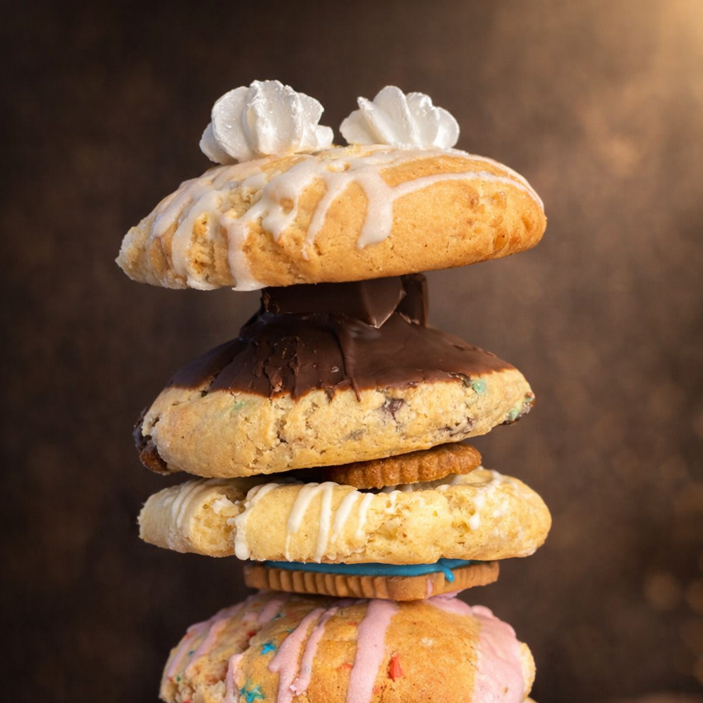 What started two years ago as a way to create income before maternity leave and keep my head above water quickly became something far bigger than I ever imagined. From baking a few batches at home to now making hundreds of cookies every month, this little business grew through late nights, big dreams, and a whole lot of love. Every cookie is still made with care, generously stuffed, and baked from the heart — by a mama who never expected a simple need to turn into something so sweet.